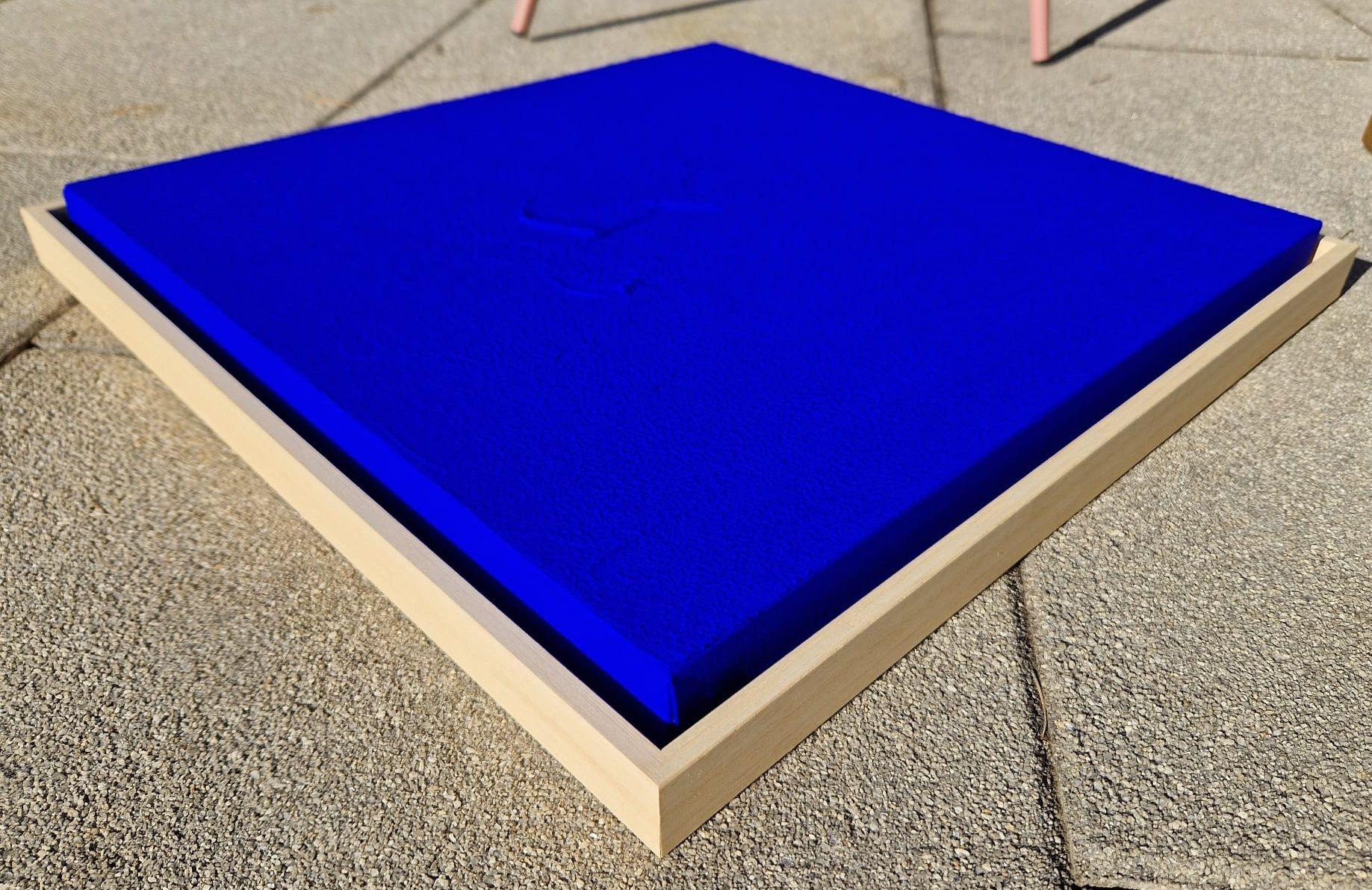Tableau contemporain monochrome minimaliste bleu électrique.